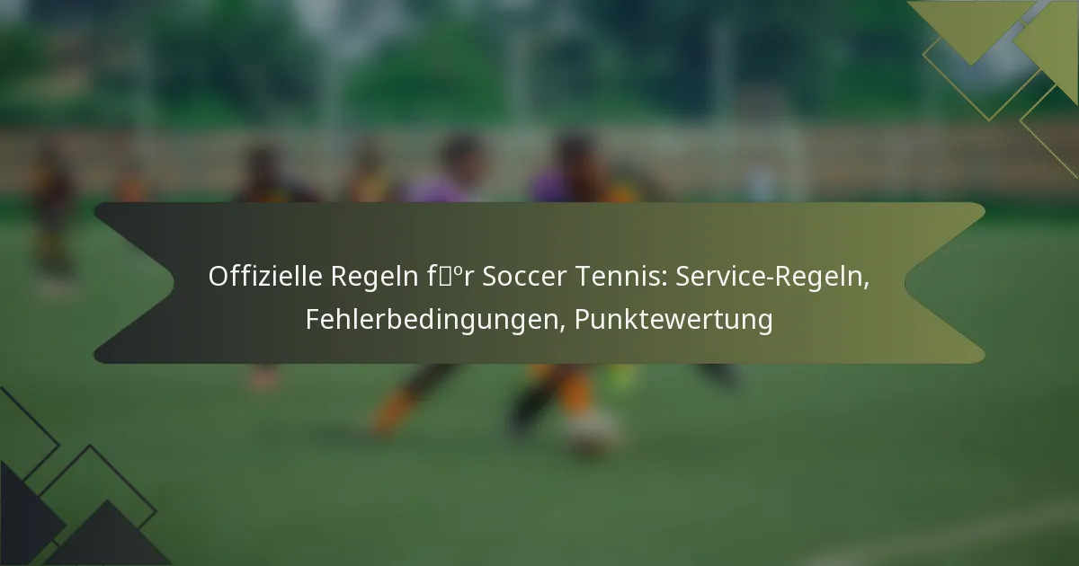Wichtige Vorschriften im Soccer-Tennis umfassen Regeln für den Aufschlag, das Punktesystem und Fehlerbedingungen. Ein Aufschlag muss innerhalb eines bestimmten Zeitrahmens ausgeführt werden, und die Spieler müssen sicherstellen, dass der Ball das Netz überquert, ohne es zu berühren. Wenn der Ball außerhalb des festgelegten Platzbereichs landet, wird dies als Fehler gewertet.