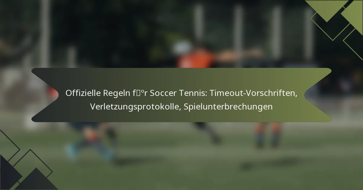 Im Fussballtennis werden Timeout-Regelungen implementiert, um den Spielern zu ermöglichen, das Spiel unter bestimmten Bedingungen zu pausieren, was die Sicherheit der Spieler und Fair Play gewährleistet. Verletzungsprotokolle sind eingerichtet, um Verletzungen effektiv zu managen, und beschreiben die Schritte für medizinische Hilfe und Spielerwechsel. Darüber hinaus können Spielunterbrechungen aufgrund von Verletzungen, Streitigkeiten oder anderen externen Faktoren auftreten, die den Spielablauf stören.